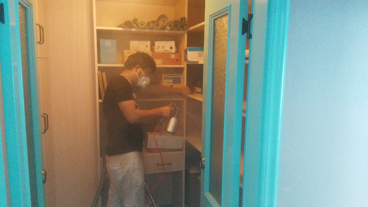 針對其結(jié)構(gòu)特點(diǎn)及污染情況,我公司技術(shù)及施工人員采用專項(xiàng)專治的施工方案,針對重點(diǎn)污染區(qū)域,重點(diǎn)治理,例如鞋柜、兒童床、床墊。針對其墻面、沙發(fā)使用我公司研發(fā)的利純光觸媒進(jìn)行甲醛清除,這些地方光照量較充足,便于光觸媒對甲醛的分解,對于刷漆的家具、書桌、衣柜、木門等采用甲醛清除劑進(jìn)行處理,針對不同污染物,做分別處理。經(jīng)過我公司重點(diǎn)治理,一周后復(fù)查結(jié)果各種有害物質(zhì)含量均已達(dá)到國家標(biāo)準(zhǔn)以內(nèi),為業(yè)主清理甲醛,還顧客一個安全,健康的生活環(huán)境是我們?nèi)w工作人員的責(zé)任,下面為施工現(xiàn)場照片: